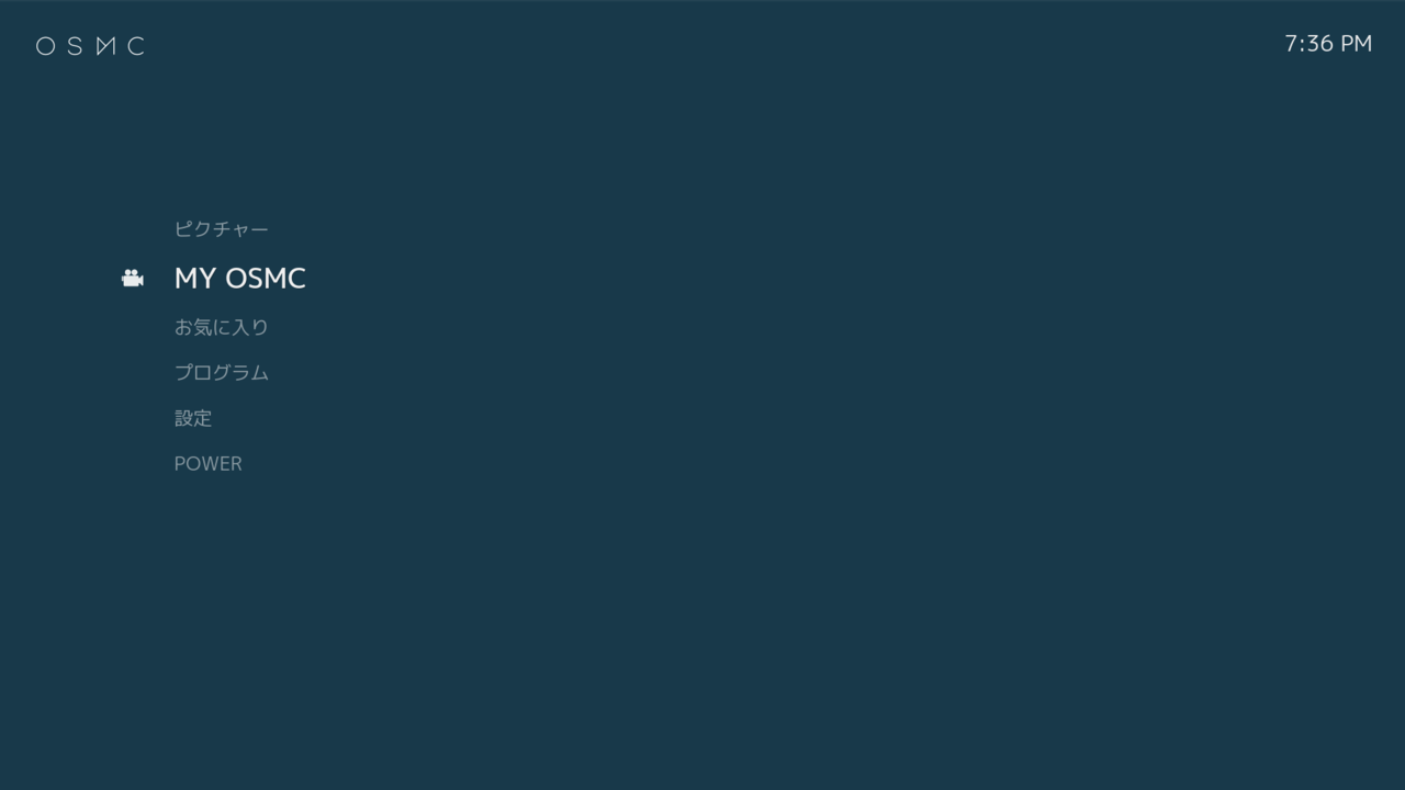 起動するとこんな感じです。OSMCテーマ標準のフォントは流行りのLightなウェイトを持つRobotoとOpenSansが利用されているため、もちろんのこと日本語は表示できません。 テーマのデザインを損ねることなく、日本語でも美しい細字のフォントで表示したく思い、M+ FONTを利用することにしました。