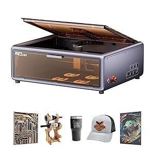 これらは筐体に覆われたエンクロージャータイプで、加工中にレーザー光や煙を外に出さない作りになっている。 筐体のないオープンフレームタイプのものならぐっと価格は下がるが、組み立て式だったり保護メガネや換気設備を整えたりしなければならない。