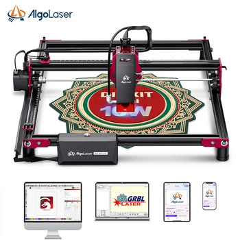 AlgoLaserというメーカーの最廉価版オープンフレーム型レーザー彫刻機の組み立てキット。 Wi-Fi経由でスマホアプリと繋げられ、USB接続でPCからの制御ができるベーシックな作りだ。 性能としては10Wクラスのレーザーを搭載し、最大移動速度は12000mm/minで最小移動間隔は0.05mmと、数字だけ見れば5万円前後の製品と引けを取らない。
